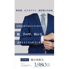 2023/12/27 時間制回数券時間内なら好きなだけ!自由に選べるオーダーメイド脱毛 「気になる部分をまとめてスッキリ!時間制回数券なら、30分・60分のコース内で、お好きな部位を自由に脱毛OK。『今日は脚と腕』『次回はヒゲ... |